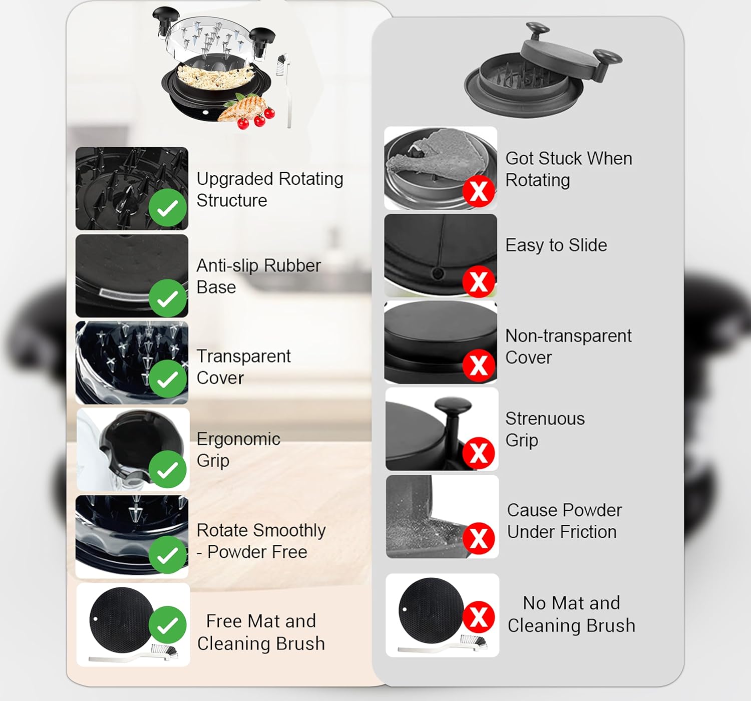 Complete Cleaning Kit: Includes a cleaning brush and mat, making it simple to keep your shredder hygienic and ready for your next meal. No more stubborn meat residue!